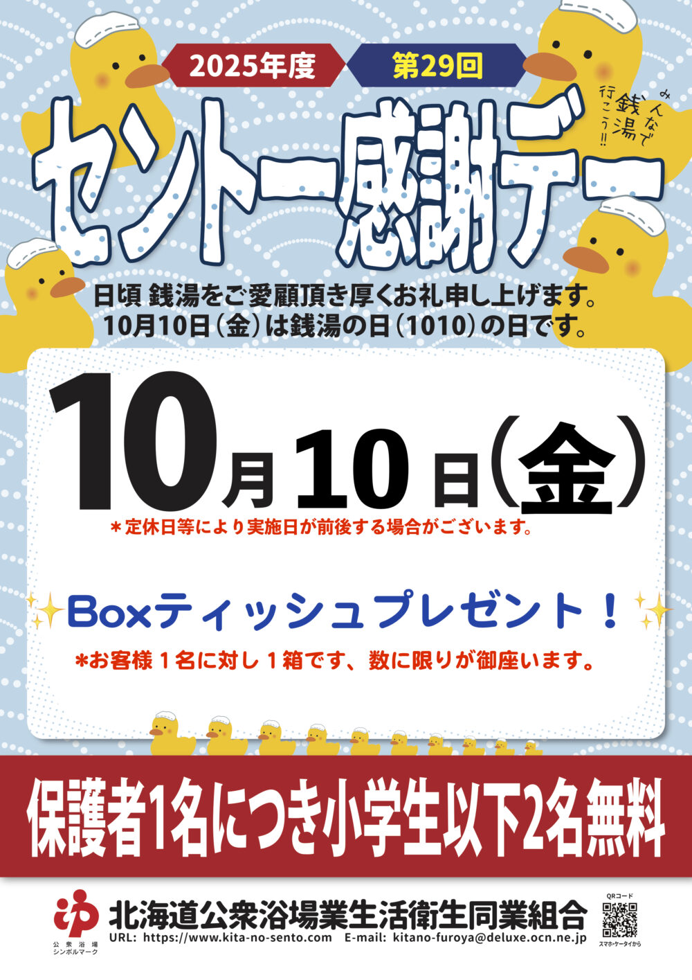 ☆10月10日(金)は銭湯の日!第29回銭湯感謝デー!☆