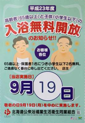 敬老の日、9月19日は高齢者(65歳以上)、子供(小学生以下)の方は